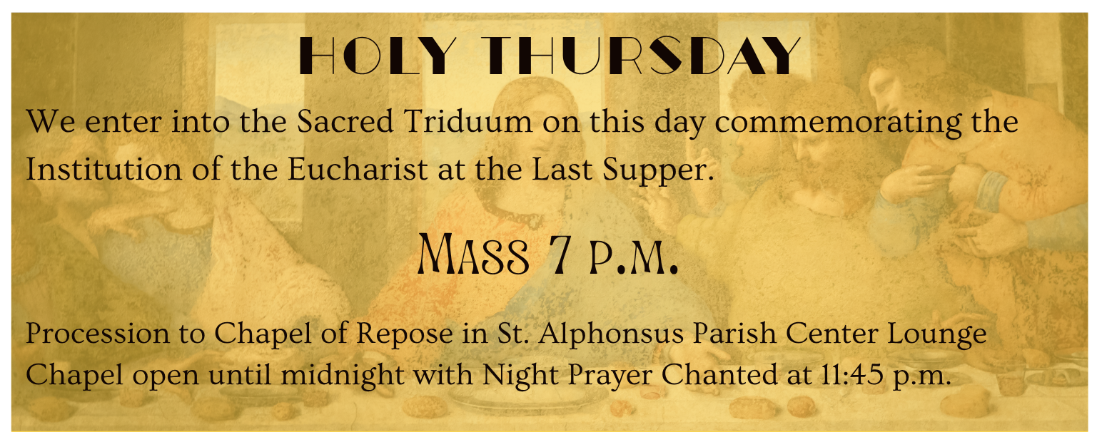 Wednesday - 4:30-5:15 p.m. Reconciliation - 5:30 p.m. Mass